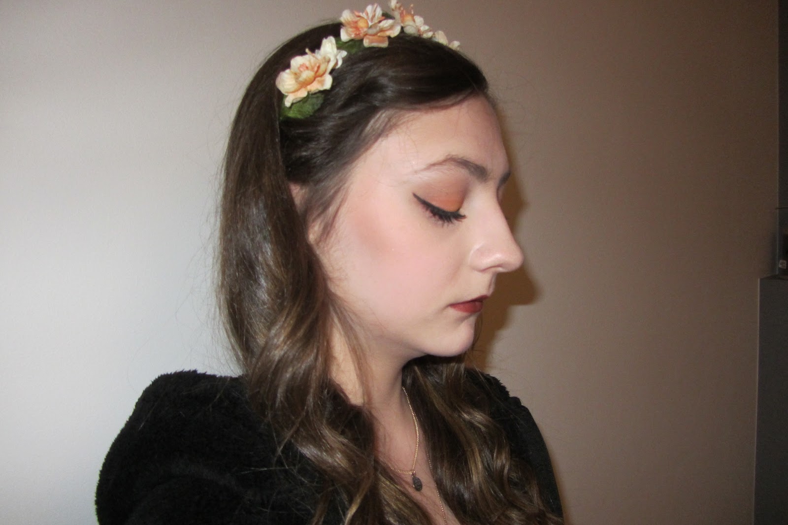 Well Hey There!! Sunday evenings for me are usually pretty boring affairs.Quite often I have been out all day with family having dinner or shopping with my Nan, or I could have been rather productive that day and studied something or finished homework from Friday. But usually I spend Sundays just dossing around doing a whole ton of nothing! I tend to use Sundays to catch up on any series that I've fallen behind in on Netflix while I work on new blog post ideas and I often have the house to myself as my parents go out garden shopping or for coffee, so that's my fave as I can turn my music up as loud as I like and dance around singing at the top of my lungs! Now to be fair, I could go with them but I really couldn't be bothered! The other day my mom even asked if I had a boyfriend that I bring over while they're out of the house and then sneak him back out before they get home?! At this I actually laughed so hard!! I was like, "HAHAHA! I'm flattered that you think that by some miracle I did have one, but no, I don't." I found it way too amusing! Anyway, back to the point, as during the day I've caught up on all the things I need to watch, come the evening I get pretty bored. That's when I like to tryout new makeup looks, or hairstyles, or mix and match clothes to create wacky outfits. So this particular Sunday had the most beautiful sunset. The sky was a gorgeous mix of different oranges, red and even pink. This inspired me to base my eye-makeup around a sunset. Also it was another chance for me to practice my winged eyeliner, and although it took six attempts to get them to match, I was determined not to give up! This Summer I've also been OBSESSED with flower crowns, and FINALLY got my own a few weeks ago. As considering I have a pretty tiny head and body, most were too big and looked stupid or didn't fit my head so when I found this one in Penneys, I was rather excited! When I was finished this look I realized that I did actually look quite tumblr, anyone agree?